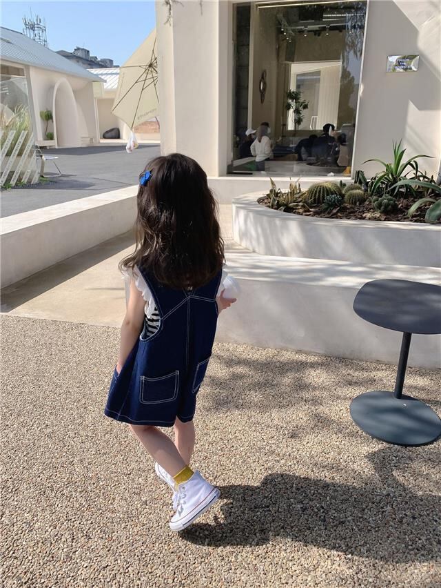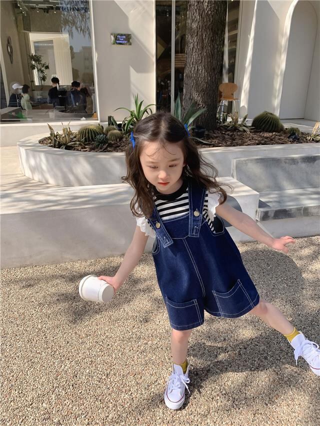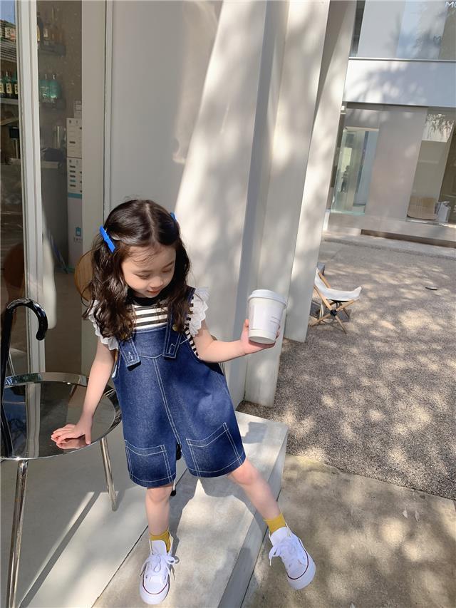 デニムサロペットのショートオーバーオールは、海外子供服の人気ブランドから届いたキッズ用のアイテムです。