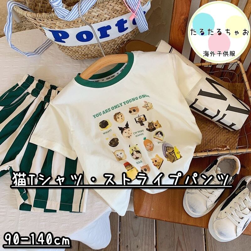 【取寄せ販売・一部即納】上下セットアップ 猫 ショートTシャツ 縦ストライプ ショートパンツ