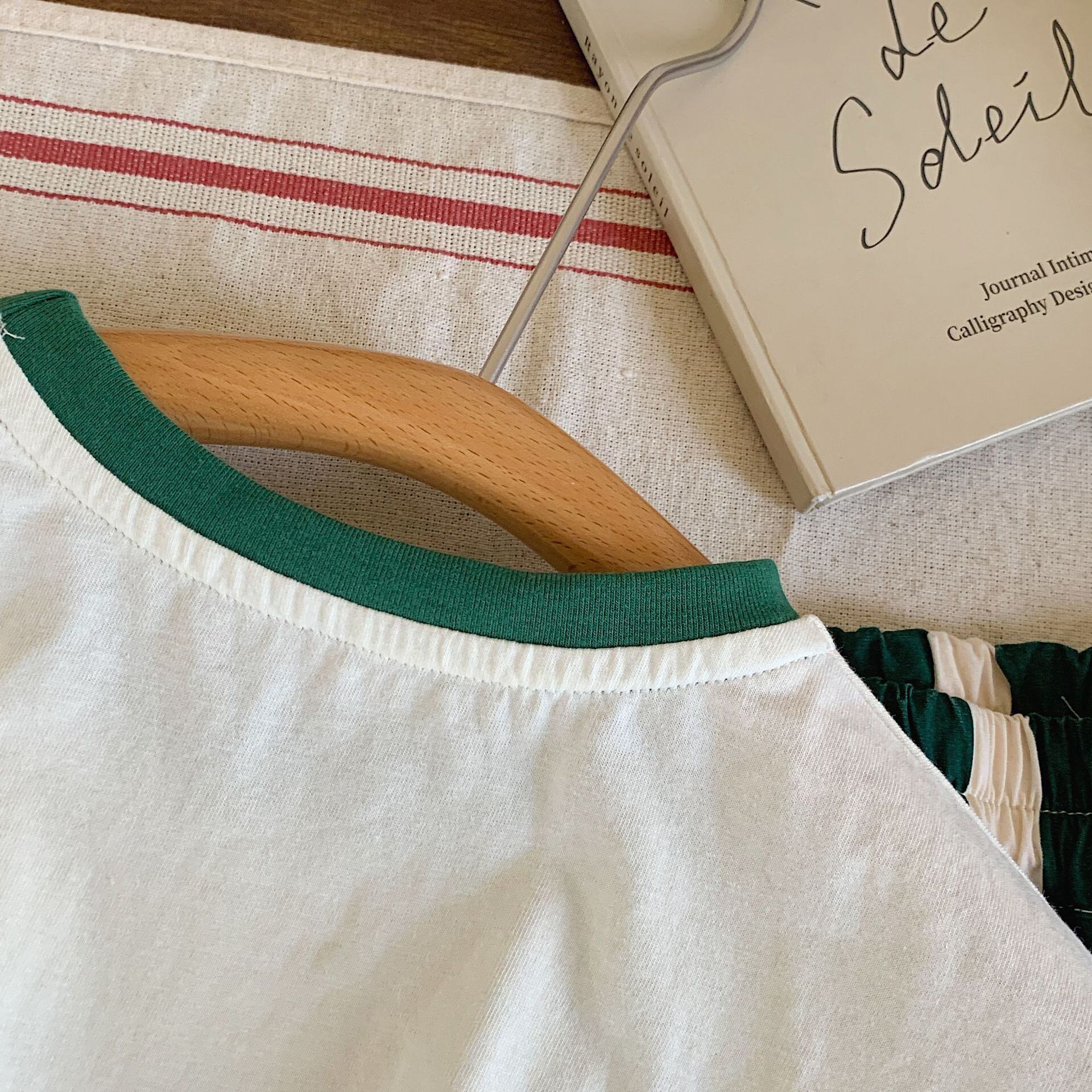 爽やかな緑と白の縦ストライプショートパンツがセットになっています。