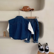 お子様のおしゃれ心をくすぐるデニムのセットアップ上下です。